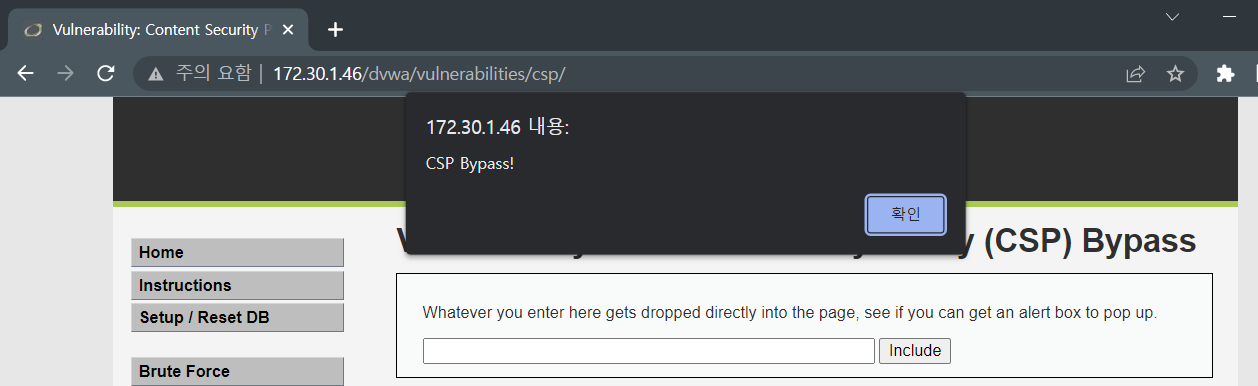 - alert 함수 안의 문자열만 CSP Bypass로 변경하여 Include 하였다.