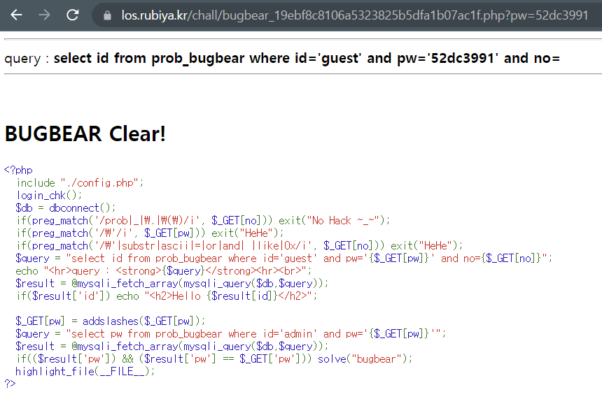 url = "https://los.rubiya.kr/chall/bugbear_19ebf8c8106a5323825b5dfa1b07ac1f.php"